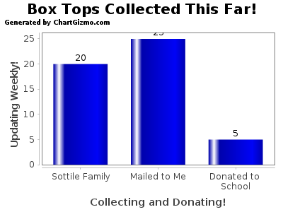 To show my appreciation, I have pledged to donate in cash to the school the same amount of box tops collected by the kind people of the blogosphere! With 45 collected in the past week, I rounded up and donated 5.00 to the school! Let's get rolling!! Remember, every little bit helps!